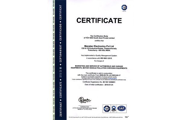 MANATEC is proud to announce that it has migrated from ISO 9001:2008 to ISO 9001:2015 complying with the latest Quality standards. The certification was conducted in accordance with the TÜV SUD auditing and certification procedures and is subject to regular surveillance audits.